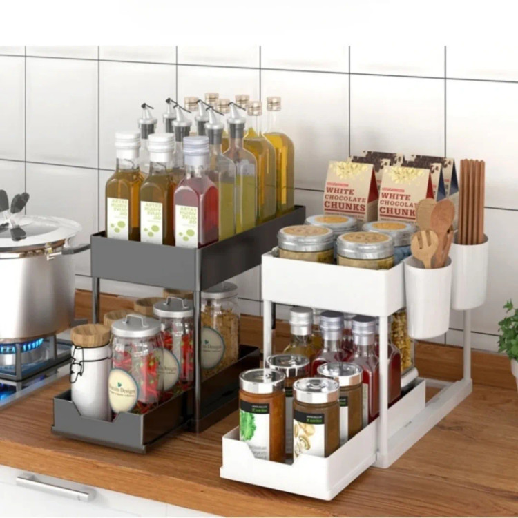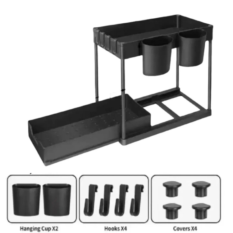 معرفی محصول:قفسه و جای وسایل زیر سینک Hoffnugshween، کشوی کشویی آشپزخانه، حمام، زیر سینک، سبدهای قفسهای، کابینت حمام، دو طبقه، کشوهای کشویی دوتایی این کشوی کشویی دوتایی ارتقا یافته به شما امکان دسترسی آسانتر به وسایل پنهان شده در پشت سینک را میدهد و مشکل خم شدن برای پیدا کردن وسایل را حل میکند کشوی کشویی به راحتی توسط دستهها بیرون کشیده میشود تا به وسایل دسترسی آسان داشته باشید. کشوی زیر سینک جادار و با ظرفیت بالا است. ارتفاع کشوی کابینت حمام بین لایههای بالایی و پایینی میتواند به ۱۳ اینچ برسد. با نظمدهنده زیر سینک ما، فضای زیر سینک خود را متحول کنید! طراحی دو طبقه ارتقا یافته ما ۹۹٪ از ارتفاع بطریها را در خود جای میدهد و به شما این امکان را میدهد که ضمن مرتب و منظم نگه داشتن بطریها و شیشهها، فضای ذخیرهسازی خود را به حداکثر برسانید. با نظمدهنده زیر سینک ما، آنچه را که نیاز دارید، به سرعت و به راحتی پیدا کنید! ساختار بادوام و پایدار برای نگهداری وسایل این نظمدهنده زیر سینک از پلاستیک ABS با کیفیت و لولههای نگهدارنده ضد زنگ ساخته شده است، ساختاری پایدار دارد و میتواند وسایل سنگین حمام را در خود جای دهد وسیله به اندازه کافی جادار است تا تمام وسایلی را که قصد دارید در آن قرار دهید، در خود جای دهد و دارای 4 قلاب اضافی برای آویزان کردن وسایل است که به طور موثر از کل فضای کابینت استفاده میکند. با راحتی کشوهای کشویی دوگانه در این نظمدهنده کابینت آشنا شوید! با این قطعه همهکاره، از فضاهای کوچک نهایت استفاده را ببرید و به راحتی به مکانهای صعبالعبور دسترسی پیدا کنید. ایدهآل برای کمد، آشپزخانه، حمام، انباری، اتاق رختشویی، دفاتر، اتاق خواب و موارد دیگر! همین امروز مرتب شوید! مونتاژ ساده و استفاده آسان نظمدهنده زیر کابینتی از دو لایه بالایی و پایینی تشکیل شده است. لایه پایینی یک جعبه کشویی و لایه بالایی یک لایه ثابت است. لایه میانی توسط ۴ لوله استیل ضد زنگ پشتیبانی میشود و هر قفسه انباری مجهز به ۲ سبد کوچک و ۴ قلاب است. نصب آن بسیار ساده و آسان است.