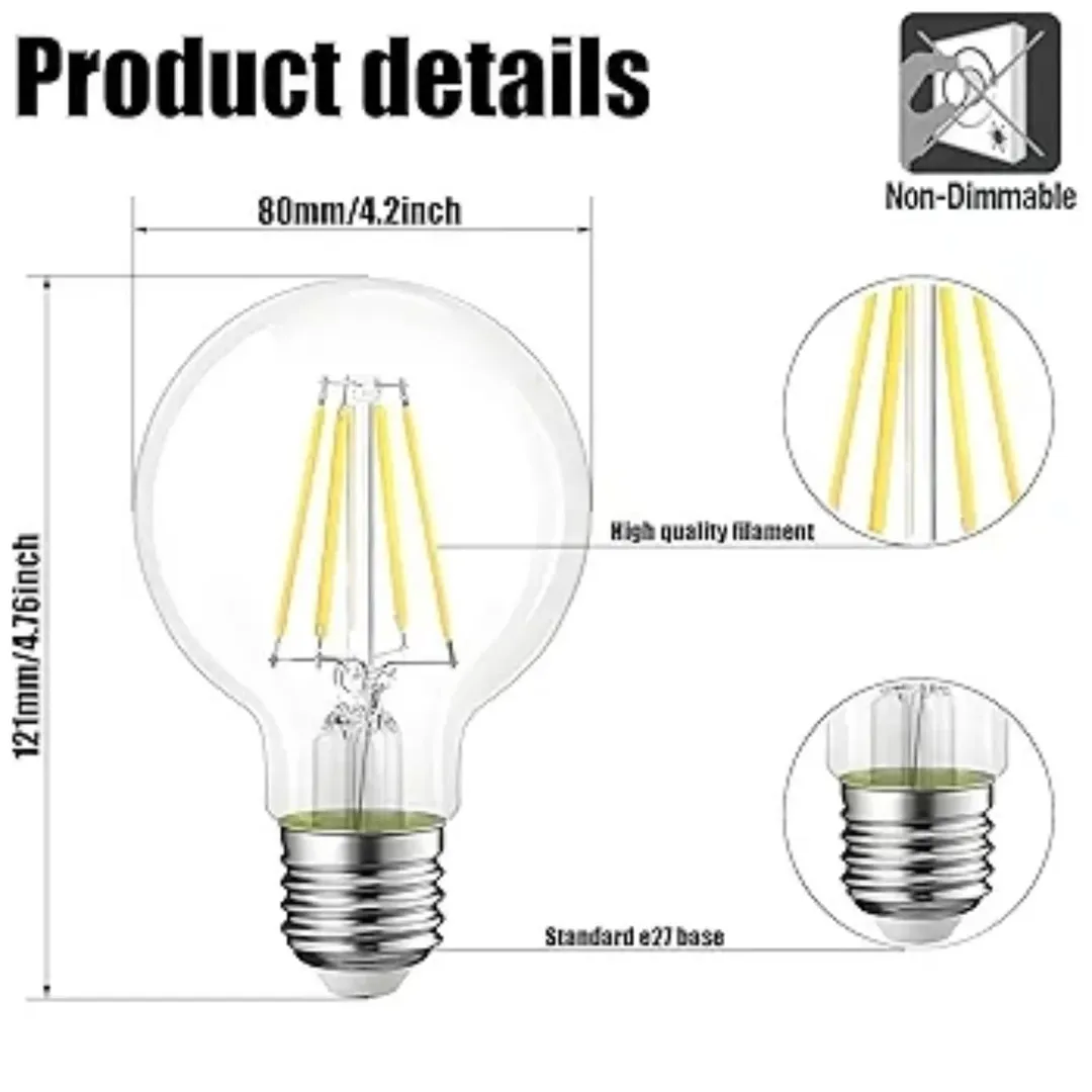 لامپ رشتهای الایدی با سرپیچ E27 و رنگ سفید خنک 6500 کلوین، معادل لامپ رشتهای 40 وات. این لامپ به عنوان جایگزینی عالی برای لامپهای رشتهای G80 سنتی عمل میکند و تا 80٪ در هزینه برق صرفهجویی میکند. همچنین دارای طول عمر بالا و پایداری بهتر از لامپهای رشتهای و CFL است.