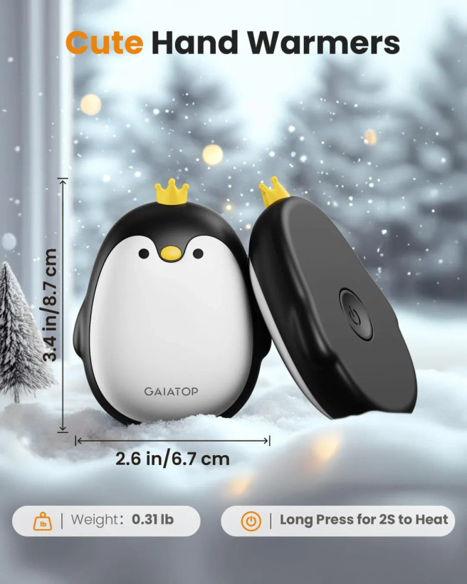 معرفی محصول ،گرمکنهای دستی برقی گایاتوپ بسته ۲ عددی، ۳ حالت گرمایش، گرمکنهای جیبی مغناطیسی قابل حمل، قابل استفاده مجدد، گرمکنهای دستی کمپینگ در فضای باز، ابزارهای پیادهروی، لوازم جانبی شکار، هدیه برای زنان، مردان اطلاعات تکمیلی محصول، ظیم حرارت برای گرم کردن سریع: گرمکنهای جیبی قابل استفاده مجدد دارای ظیم حرارت هستند و فوراً در تمام سطوح گرم میشوند؛ محدوده دما: ۱۰۴۱۱۳ درجه فارنهایت، ۱۱۳۱۳۱ درجه فارنهایت، ۱۳۱۱۴۹ درجه فارنهایت، این گرمکن دستی برقی دستها را در عرض چند ثانیه گرم میکند. گرمکن دست قابل استفاده مجدد: گرمکن دست برقی قابل استفاده مجدد دارای یک باتری قابل شارژ داخلی با 2 عدد باتری 2000 میلی آمپر ساعت است، عمر باتری 35 ساعت است، گرمکن را میتوان در عرض 2.5 ساعت به طور کامل شارژ کرد. پنگوئن در کیف شما: کوچک و سبک، بنابراین میتوانید دوستان کوچک پنگوئن خود را راحتتر در جیب یا کیف دستی خود قرار دهید؛ گرمکنهای برقی دست دو عددی مغناطیسی هستند، بنابراین یکی را گم نمیکنید طراحی زیبا و هدایای عالی: مفهوم طراحی گرمکن دست به شکل پنگوئن واقعاً زیبا است؛ این گرمکن دست قابل حمل یک هدیه کریسمس عالی و کاربردی برای زنان، مردان، دوستان، خانواده و مبتلایان به سندرم رینود است. شما را در هر مکانی گرم نگه میدارد: گرمکن دستی قابل شارژ برای پیادهروی سگ، کار، رفت و آمد، شکار، گرمکن دستی عالی برای کمپینگ، ابزار پیادهروی، ابزارهای کمپینگ، لوازم جانبی شکار، ابزارهای فضای باز، هدیه پیادهروی، ابزارهای مخصوص کوهنوردان عالی است.