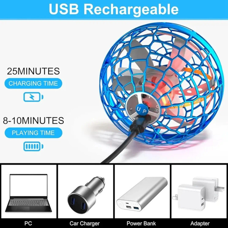 مینی پهپاد قابل شارژ سحابی جادویی کنترل دستی با نور LED، پهپادهای UFO هدیه برای اسباببازیهای تعاملی فضای باز کودکان (آبی). توپ شناور گوی مانند با RGB داخلی و نورهای رنگی روشن و براق، قابل شارژ و قابل حمل. دارای طراحی گرد با پوسته نرم و مقاوم در برابر ضربه.