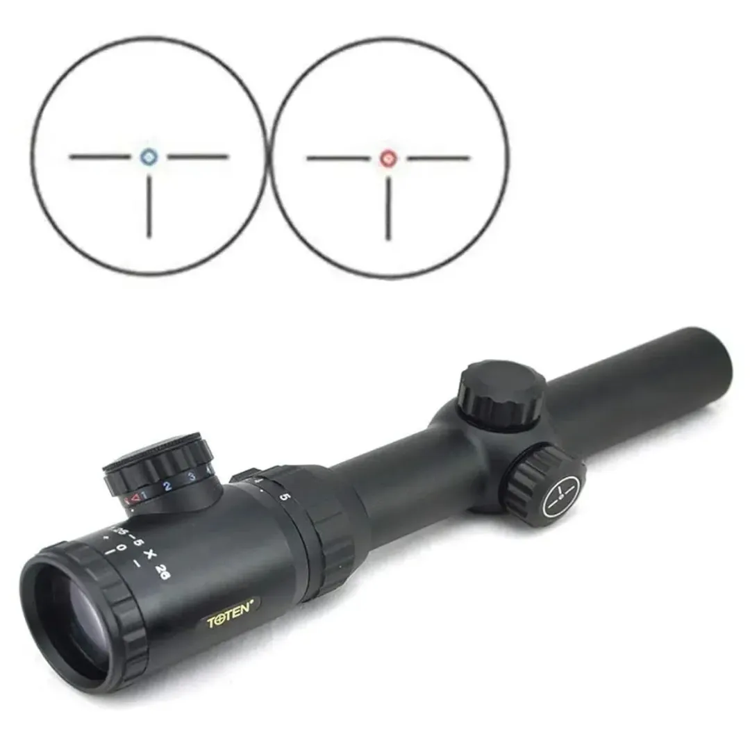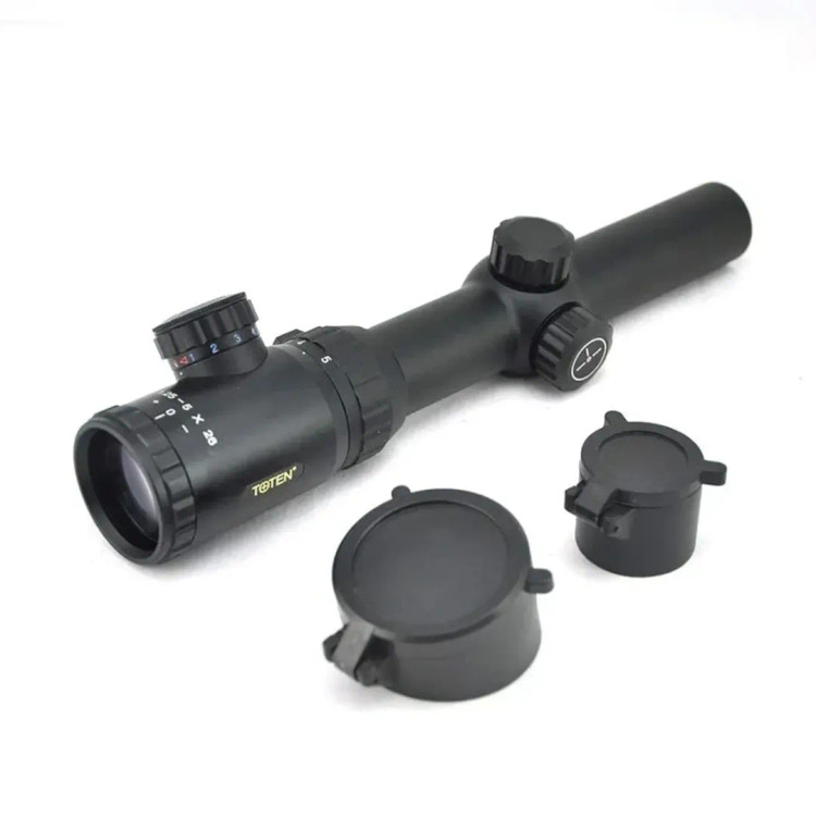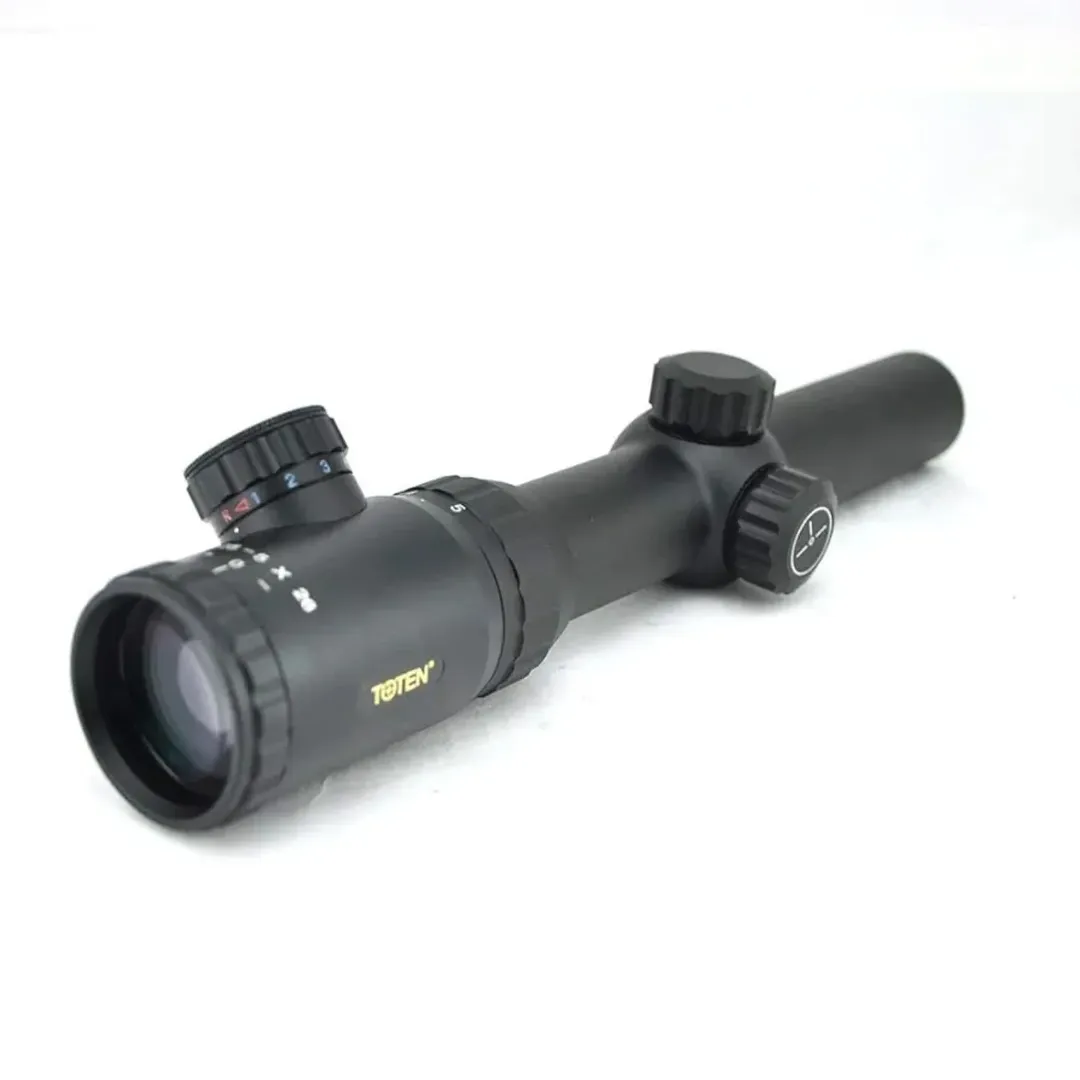 دوربین تفنگ Toten 1.255X تجهیز به رتیکل نقطه هدف روشن R/B، مقدار کلیک استاندارد و پوششهای دوربین تاشو است. قابل اتصال به تفنگ تکتیرانداز واقعی یا تفنگ AR یا تفنگ ایرسافت است و میتوان آن را نصب و استفاده کرد. کاملاً با نیتروژن پر شده و ۱۰۰٪ ضد آب است.