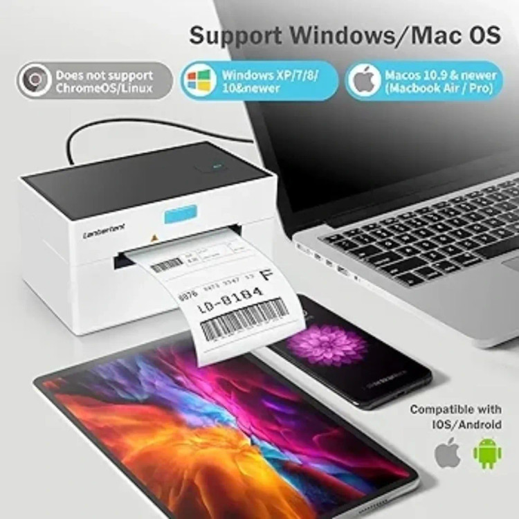 چاپگر برچسب Lanbertent با روش چاپ حرارتی مستقیم میتواند بدون تونر یا جوهر چاپ کند. دارای طراحی جمع و جور و مناسب برای مصارف تجاری و خانگی است.