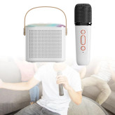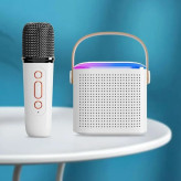 معرفی محصول، میکروفون قابل حمل میکروفون قابل حمل قابل شارژ موجود در بستهبندی، تضمین میکند که صدای شما بلند و واضح شنیده شود و آن را برای ارائهها، شبهای کارائوکه، سخنرانیهای عمومی و موارد دیگر ایدهآل میکند. عملکرد بیسیم میکروفون به راحتی و قابلیت حمل شما میافزاید. حالت تغییر صدا: خلاقیت خود را با ۳ حالت تغییر صدا آزاد کنید و انواع جلوههای صوتی سرگرمکننده و عجیب و غریب را ارائه دهید که عنصری از سرگرمی را به اجراهای شما اضافه میکند. صدای با کیفیت بالا: خود را در صدای شفاف که هر اتاقی را پر میکند، غرق کنید. این بلندگو، بیس غنی، فرکانسهای میانی متعادل و فرکانسهای بالای واضح را برای یک تجربه صوتی استثنایی ارائه میدهد. اتصال بلوتوث: دستگاههای خود را با استفاده از فناوری بلوتوث 5.3 به طور یکپارچه متصل کنید. تلفن هوشمند، تبلت یا لپتاپ خود را به صورت بیسیم به بلندگو متصل کنید و بدون دردسر سیم از موسیقی یا پادکست لذت ببرید. ورودیهای صوتی متنوع: علاوه بر اتصال بلوتوث، این بلندگو دارای پورت AUXin، شیار کارت حافظه TF و پورت USB است که روشهای مختلفی برای پخش موسیقی شما ارائه میدهد. چراغهای RGB پویا: با چراغهای LED مسحورکننده که فضایی پر جنب و جوش برای مهمانیها ایجاد میکنند یا با نورپردازی آرامشبخش محیطی، به محیط خود جلوهای خاص ببخشید. عمر طولانی باتری: با باتری قابل شارژ داخلی از زمان پخش طولانیتر لذت ببرید. بدون نگرانی از تمام شدن شارژ، تمام شب را برقصید یا جلسات خود را برگزار کنید. ۵ ساعت پخش طولانی مدت: این بلندگوی کارائوکه دارای یک باتری قابل شارژ داخلی ۲۵۰۰ میلیآمپر ساعتی است که ۵ ساعت پخش بدون وقفه را تضمین میکند. این بلندگو برای مهمانیهای تولد، کنفرانسها، کلاسها یا فعالیتهای فضای باز عالی است. این بلندگوی بلوتوث قابل حمل و میکروفون بیسیم، تمام نیازهای شما برای "آواز خواندن شاد" را برآورده میکند.