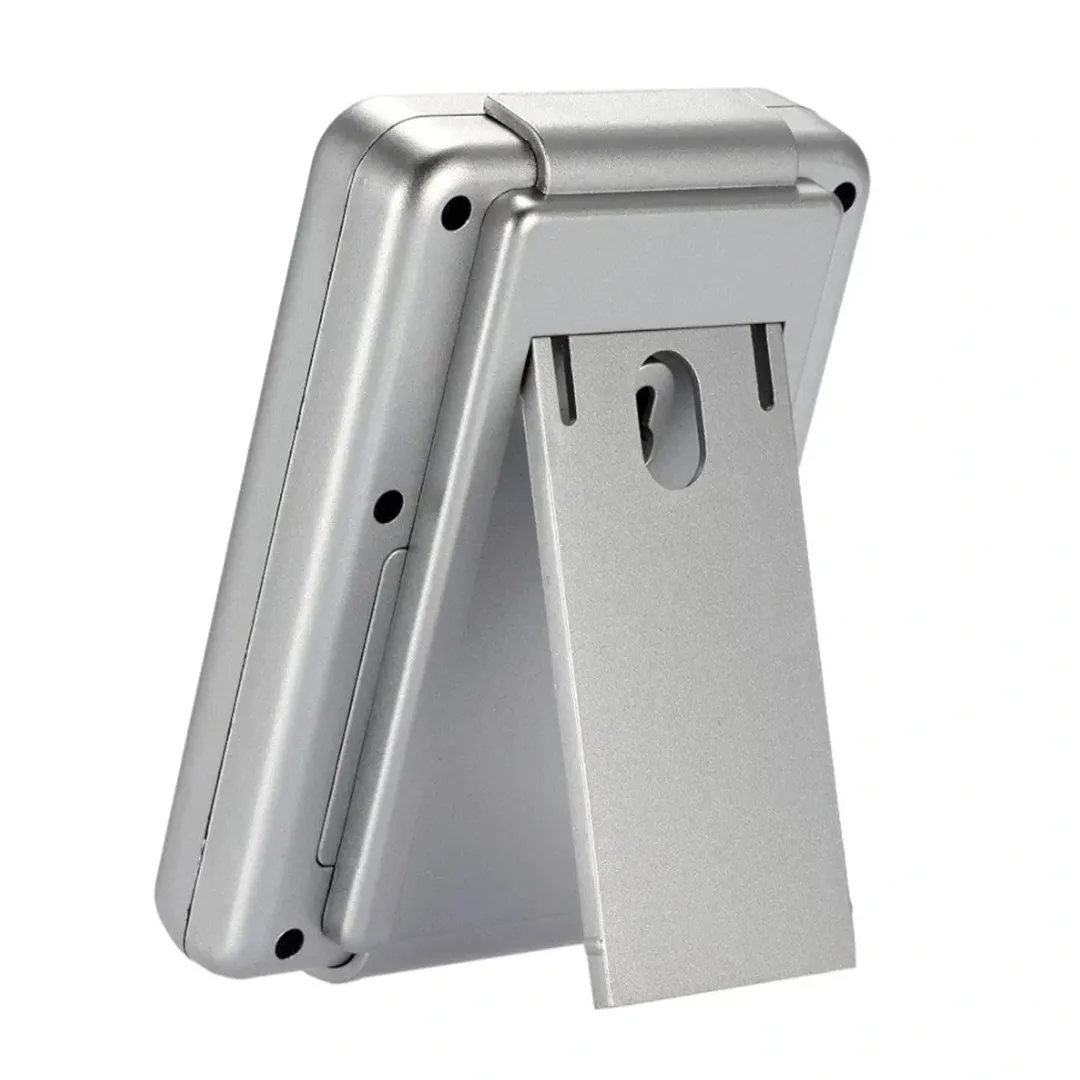 سنسور رطوبت دماسنج دیجیتال با قابلیت اندازهگیری دما و رطوبت. ابعاد تقریبی 67x100 میلیمتر، رنگ نقرهای. نیاز به 2 باتری AAA (شامل نمیشود). محدوده اندازهگیری دمای 20 تا 70+ درجه سانتیگراد و رطوبت 20% تا 95%.