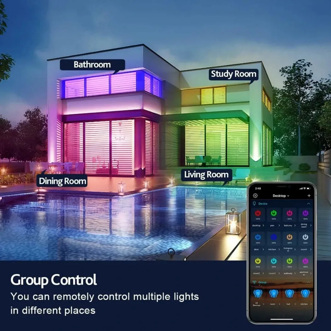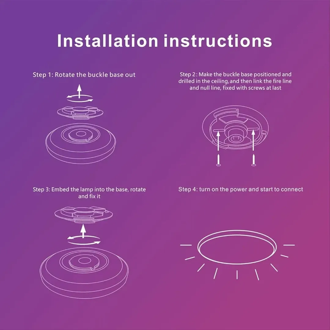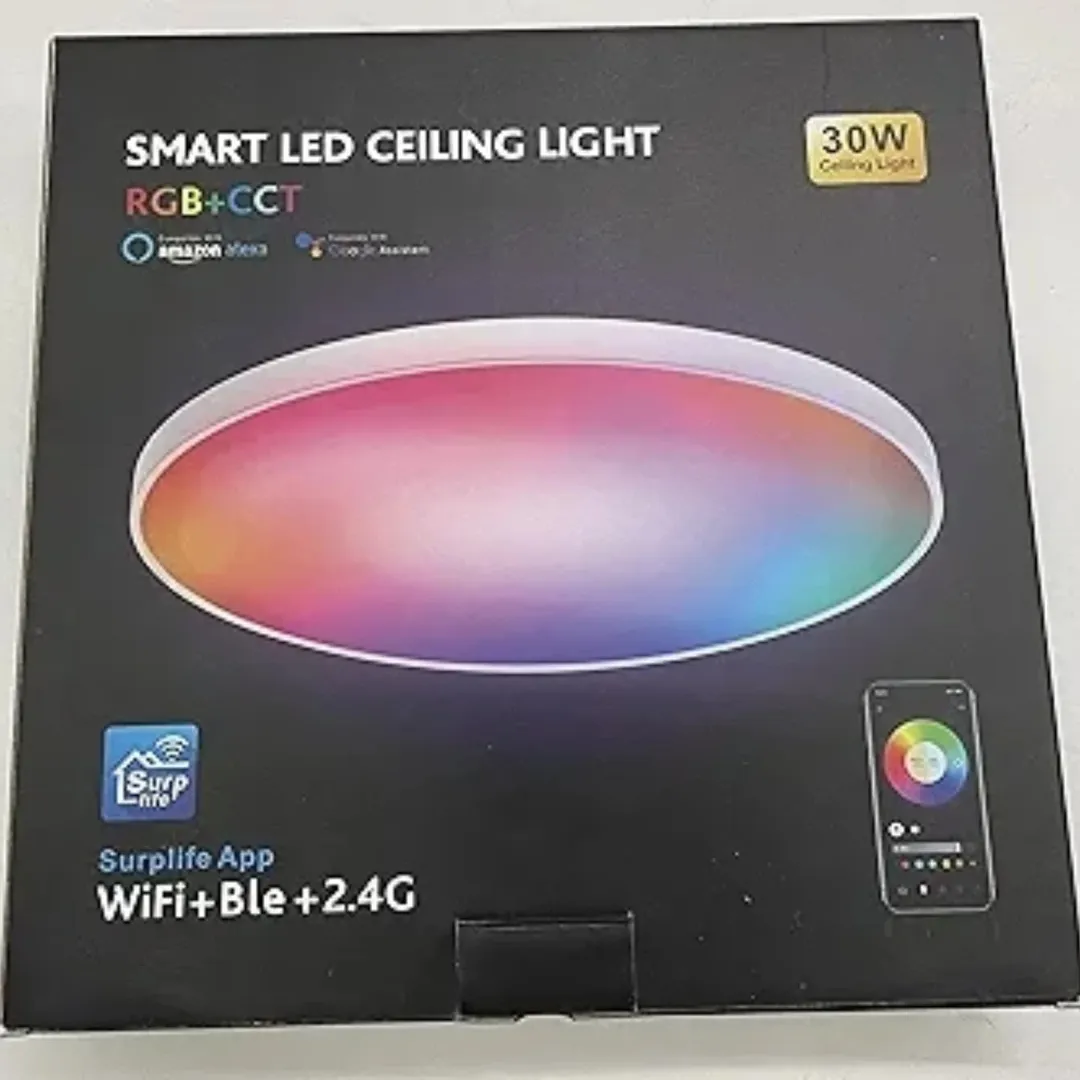 چراغ سقفی LED RGB هوشمند با کنترل از راه دور، مناسب برای اتاق کودک، اتاق خواب و حمام. قابلیت تنظیم نور و دمای رنگ، ۱۶ میلیون رنگ قابل تنظیم، و سازگاری با الکسا و گوگل هوم.
