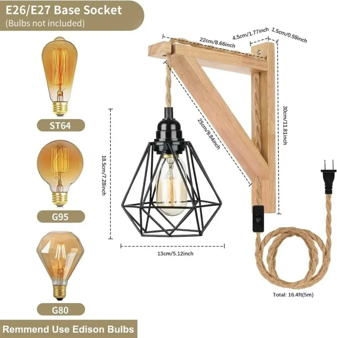 چراغ دیواری دوشاخهدار ساخته شده از طناب کنفی، بادوامتر و ضد زنگ، با طول ۸.۲ فوت. میتواند به شما امکان دهد طول را برای رفع نیازها تنظیم کنید. با دو براکت قفسهای چوبی عرضه میشوند. سبک خانه روستایی با طناب کنفی و سایهبان کتانی ترکیب کنید.