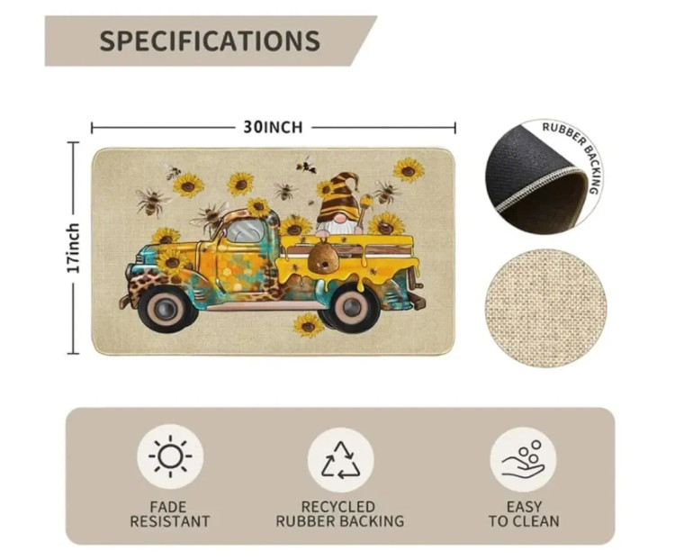 معرفی محصول ،پادری تزئینی طرح گل آفتابگردان Znutrce برای فضای داخلی و خارجی، پادری بامزه طرح زنبورهای کامیون گنوم، پادری لاستیکی ضد لغزش مناسب برای فصل بهار و تابستان، مناسب برای دکوراسیون ورودی آشپزخانه، ابعاد ۱۷ در چ. جنس باکیفیت: این زیرانداز خوشامدگویی تابستانی از کتان باکیفیت ساخته شده است. سطح کتان بیشتر کثیفی، گل و لای و خرده ریزها را پاک میکند و کف را تمیز و مرتب نگه میدارد. روکش لاستیکی ضد لغزش با کیفیت بالا از جمع شدن و جابجایی زیرانداز جلوگیری میکند. طراحی کمحجم: ابعاد 17 در 29 اینچ و ضخامت 0.25 اینچ، آن را به اندازهای مناسب برای هر ورودی تبدیل میکند. ، علاوه بر زیبایی، به ورودیها، اتاقهای صنایع دستی و فضاهای اداری شما جلوهای زیبا میبخشند. چند منظوره: پادری خوشامدگویی تابستانی ضد لغزش نه تنها میتواند از رطوبت، گرد و غبار و کثیفی جلوگیری کند، بلکه میتواند محیطی تمیز و راحت را در قسمتهای خانه، آشپزخانه، حمام، اتاق خواب و ورودیهای داخلی و خارجی حفظ کند. تمیز شدن آسان: برای تمیز کردن ملایم، با جاروبرقی دستی، جارو برقی یا تکان دادن، آن را تمیز کنید.