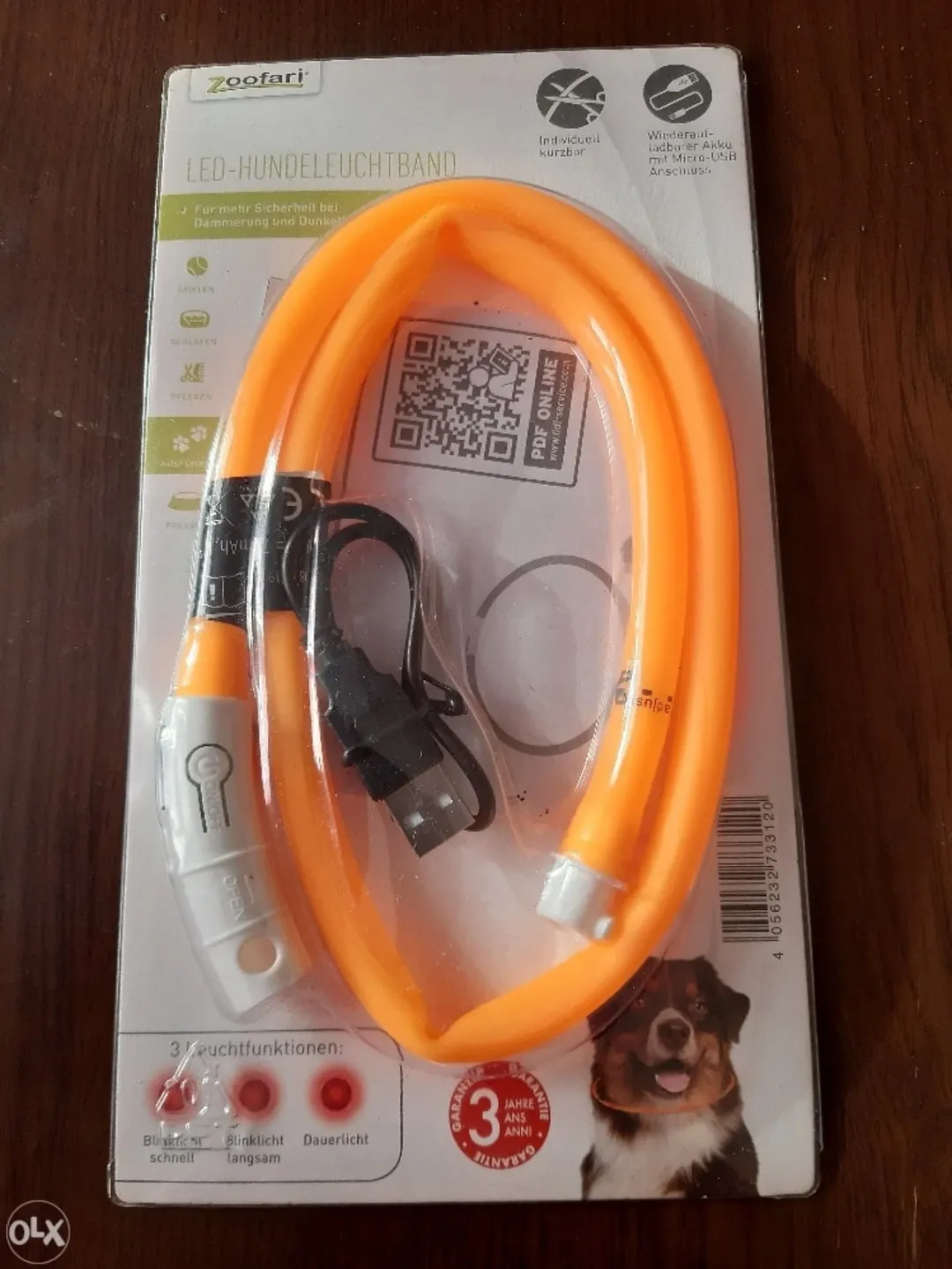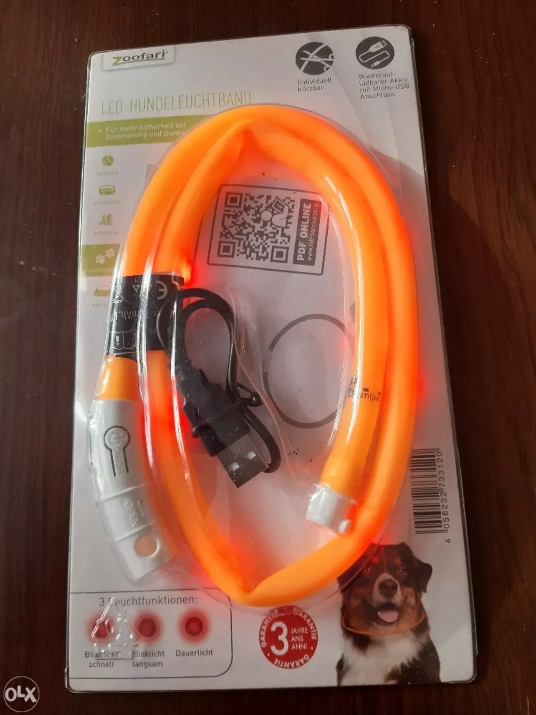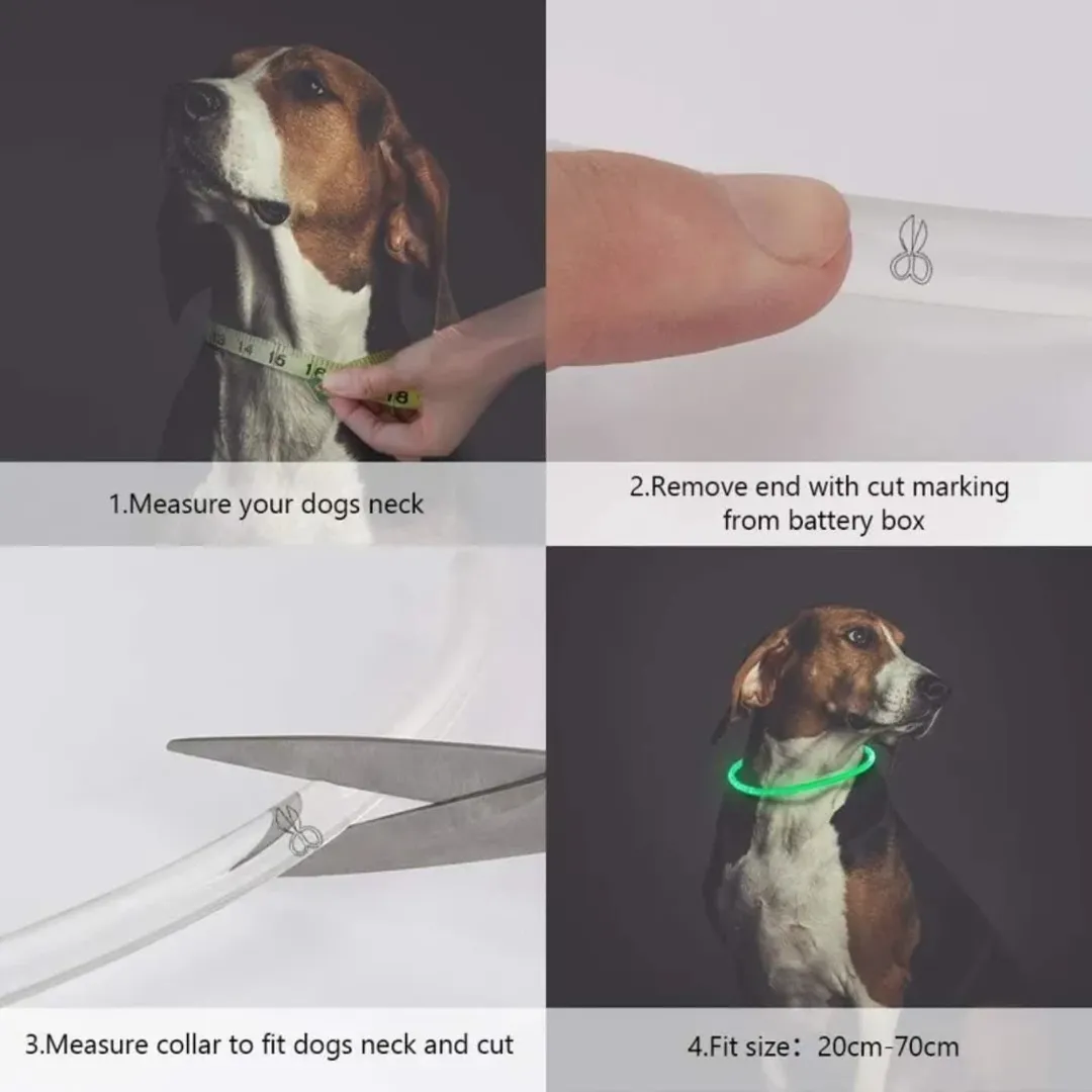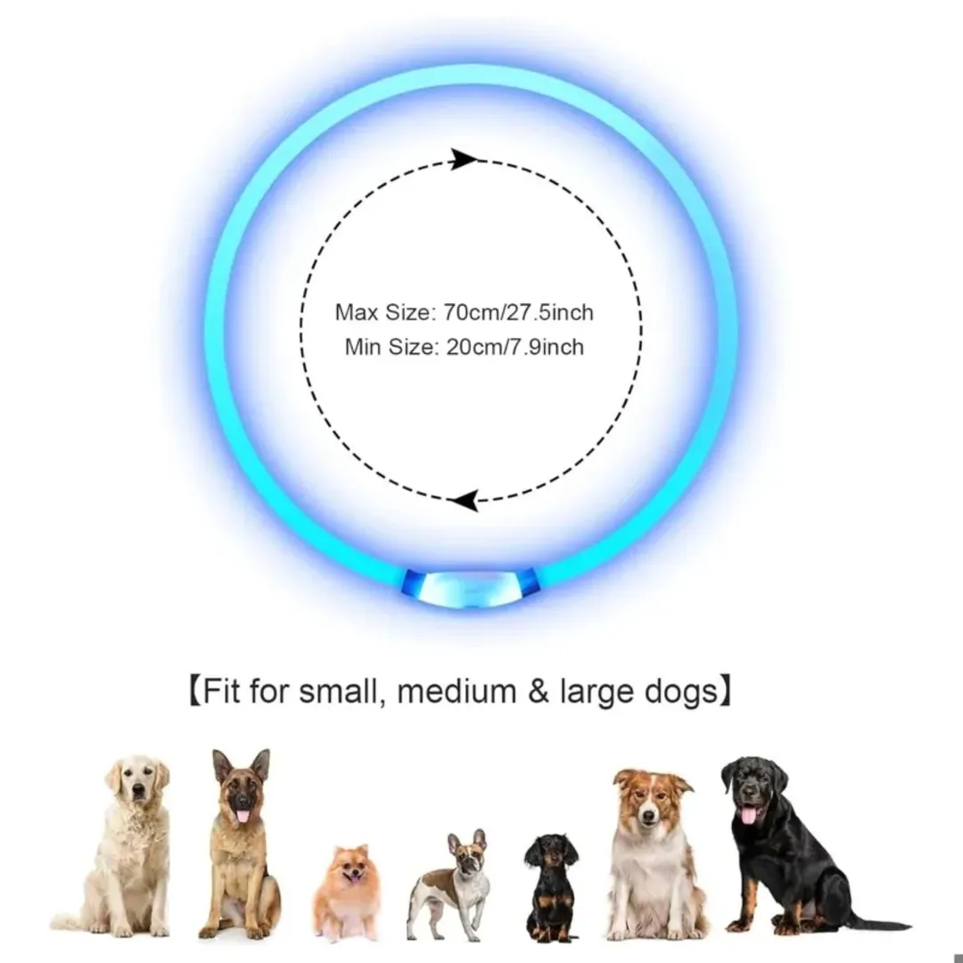 قلاده سگ LED با روشن شدن 360 درجه قابل شارژ USB و مقاوم در برابر آب. مناسب برای اندازه گردن ۲۰ تا ۷۰ سانتیمتر. با یک کلیک میتوانید نور را به حالتهای مختلف تغییر دهید. باتری لیتیومی با عمر ۸ ساعت و شارژ سریع.
