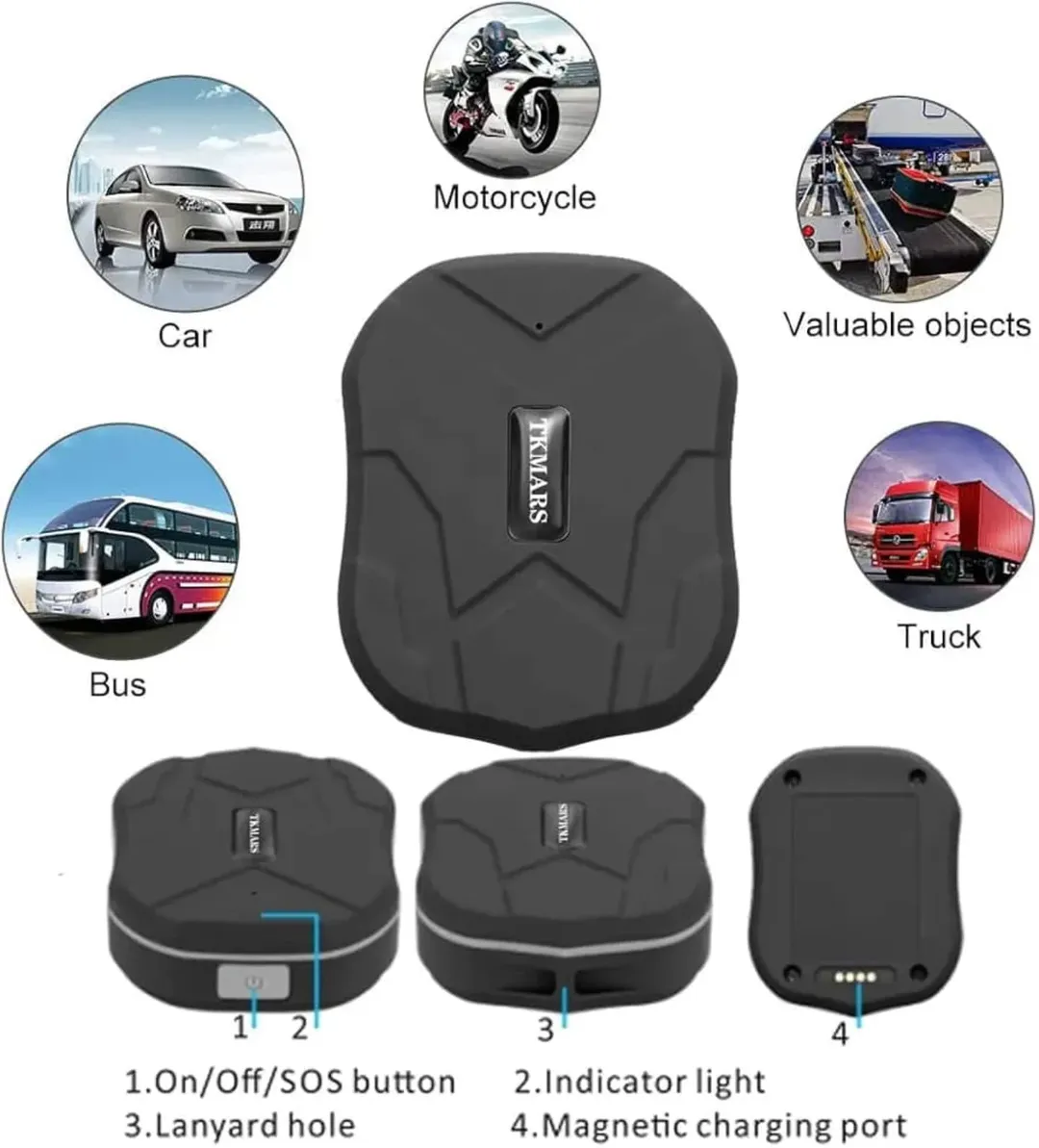 ردیاب GPS کوچک ضد سرقت با آمپر ساعت ضد آب IP65، ردیابی در زمان واقعی با موتور لرزشی، شارژ مغناطیسی و برنامه رایگان بدون اشتراک.