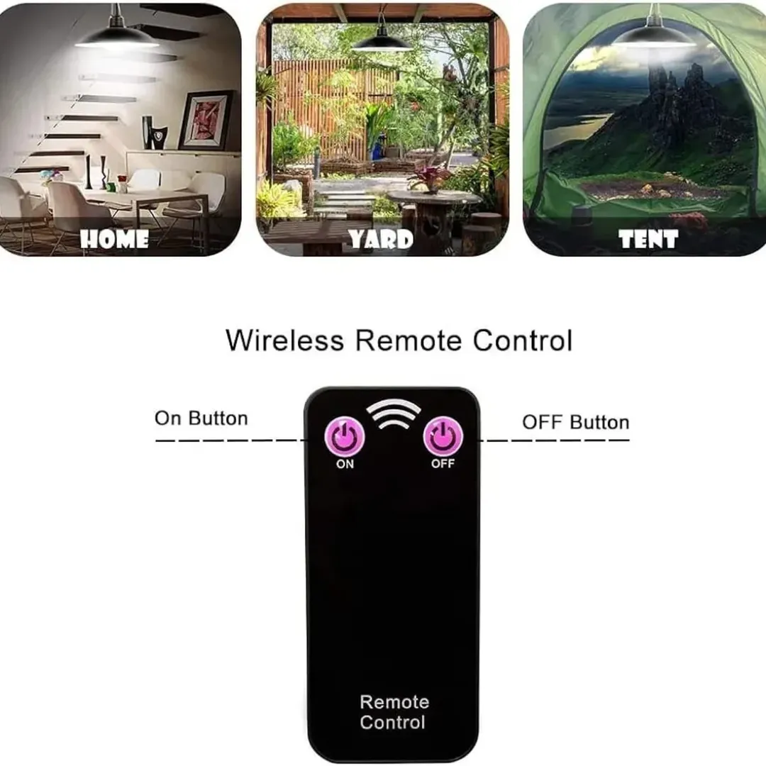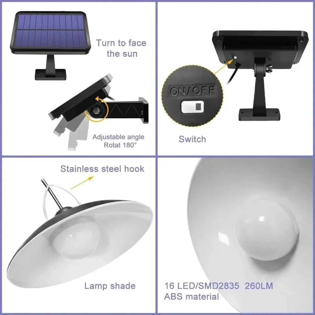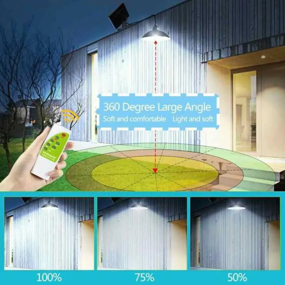 چراغ آویز خورشیدی ضد آب IP65 با کنترل از راه دور، مناسب برای سایبان خانوادگی، حیاط و ایوان. دارای باتری 4400 میلیآمپر ساعت که تا 18 ساعت روشنایی مداوم را فراهم میکند. نصب آسان و عملکرد حسگر نور.