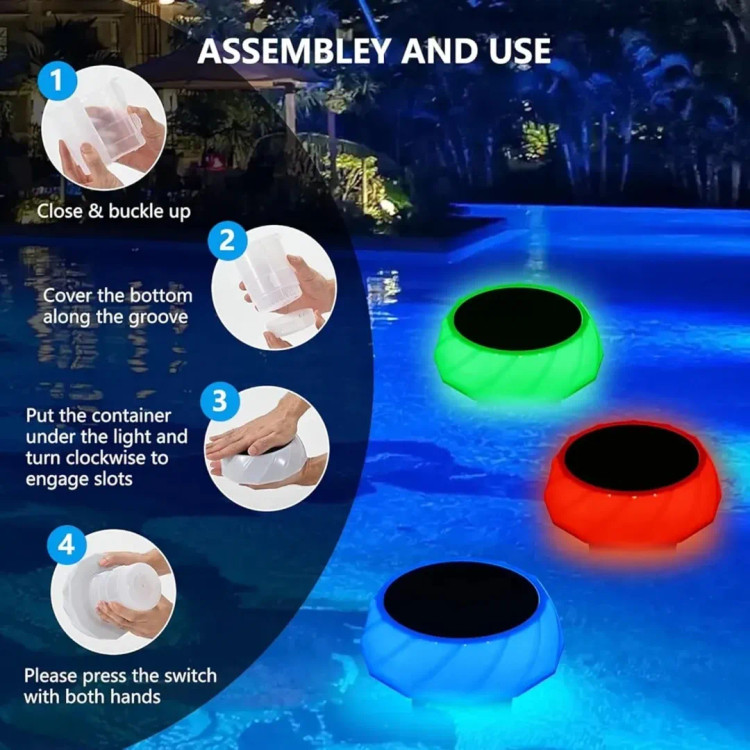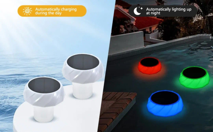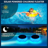پخشکننده کلر شناور ارتقا یافته با چراغهای خورشیدی ترکیب شده است. در روز شارژ میشود و در شب روشن میشود. شامل یک کنترل از راه دور برای انتخاب رنگ، زمان و روشنایی. شناورهای کلر کنترل سرعت ورود کلر به استخر را آسان میکنند.
