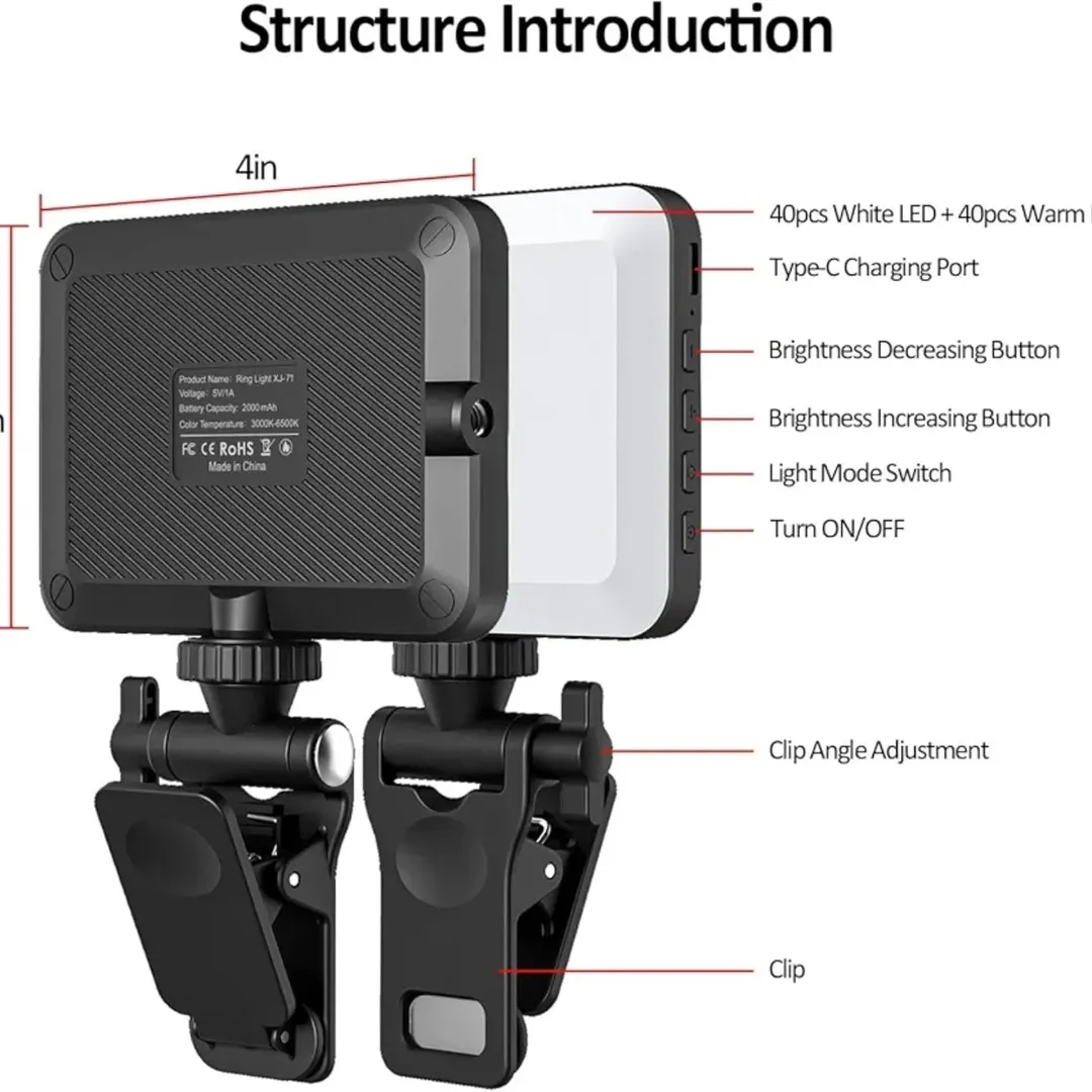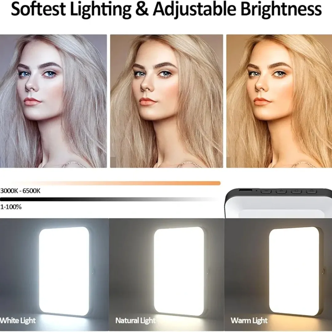 چراغ سلفی دارای ۳ حالت نور و ۱۰ سطح روشنایی با ۸۰ دانه نور LED داخلی برای بهبود کیفیت عکاسی در شب. دارای باتری قابل شارژ ۲۰۰۰ میلیآمپر ساعتی و پورت شارژ USB Type-C.