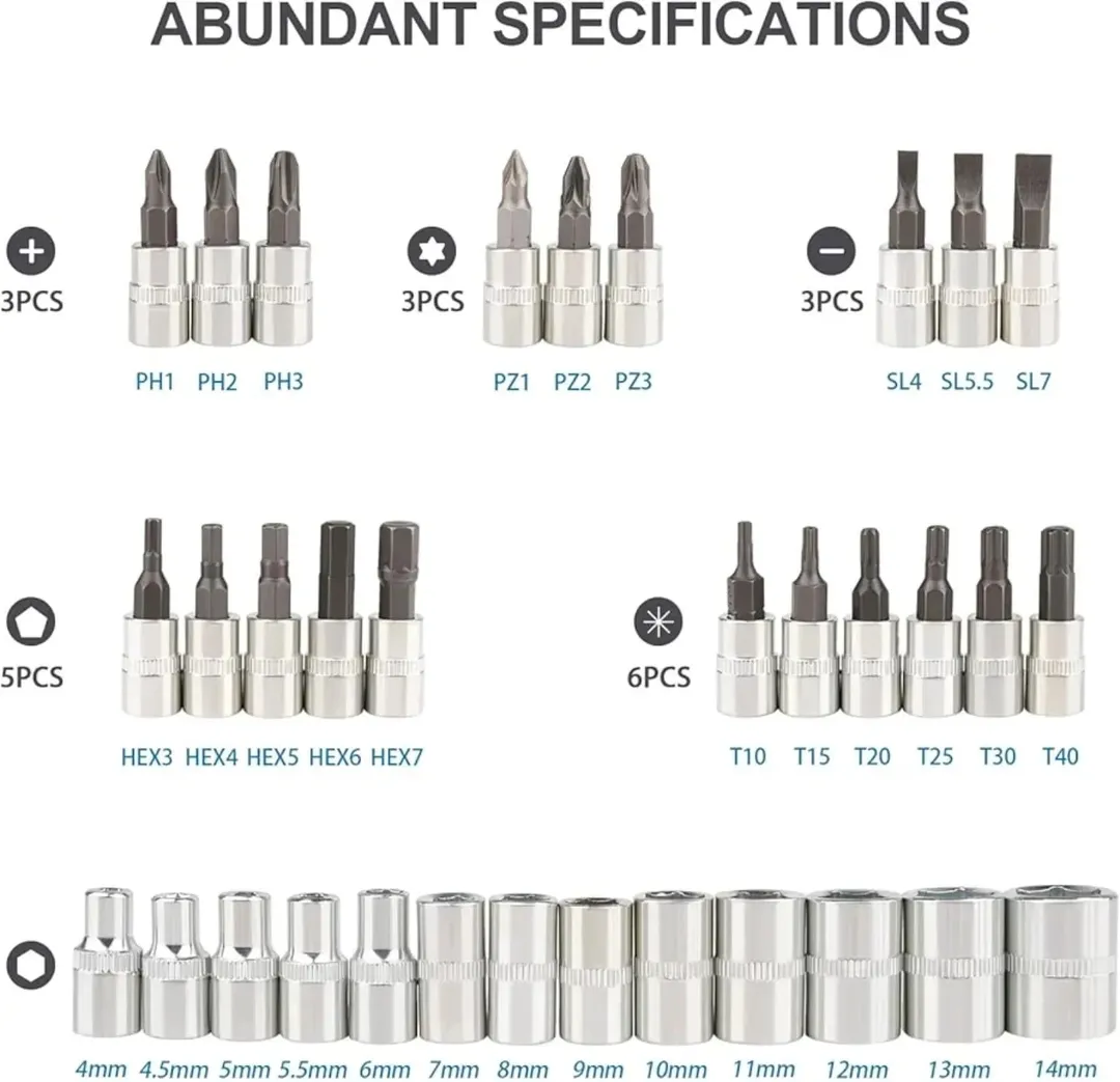 مجموعه آچار جغجغهای کوچک با کیفیت برتر از فولاد کربنی، شامل ۲۱ عدد سر مته و ۱۳ عدد سرپیچ. طراحی جمع و جور با جعبه مناسب برای نگهداری آسان.