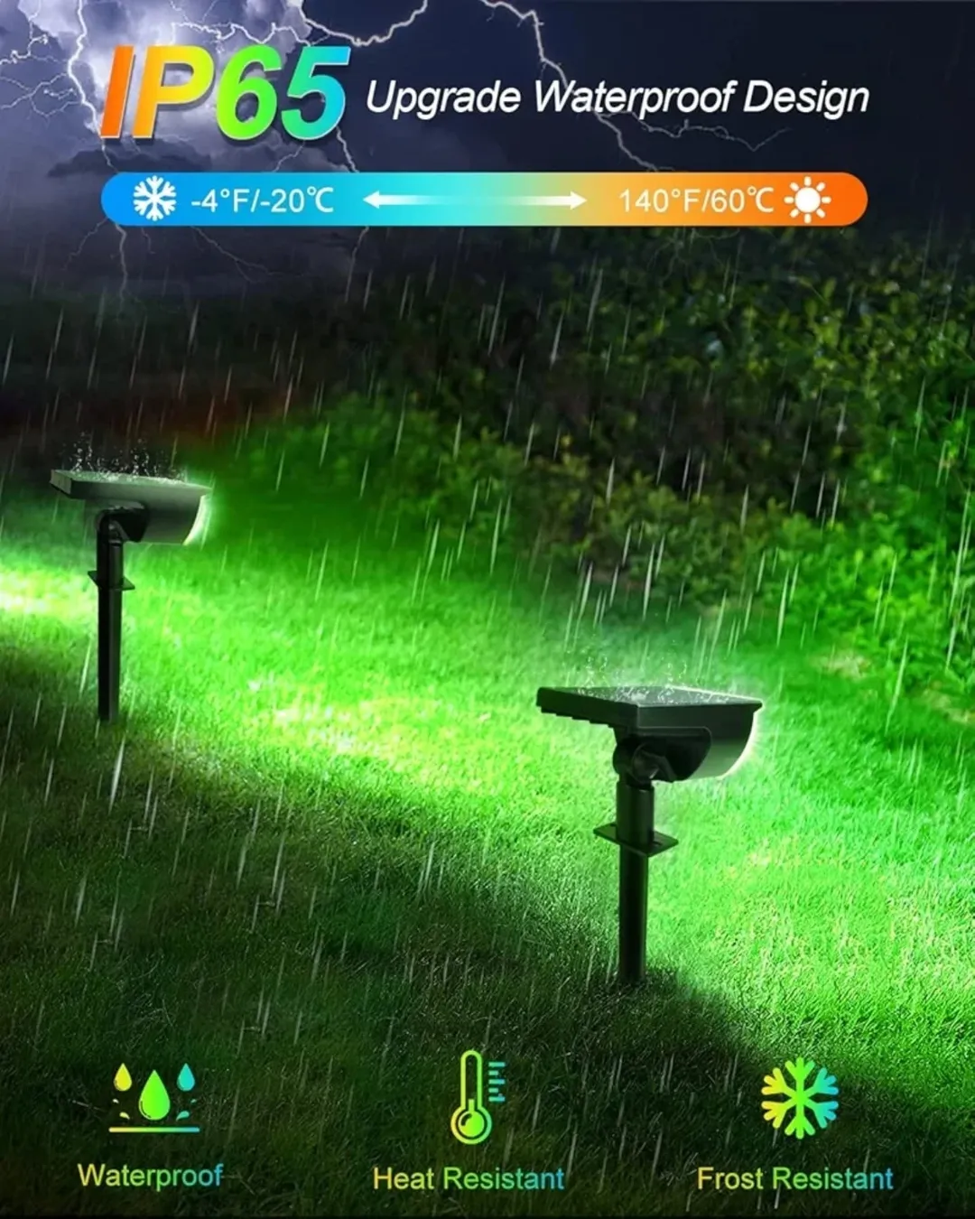 چراغ خورشیدی فضای باز با قابلیت تغییر رنگ RGB و چرخه اتوماتیک، با مواد آکریلونیتریل بوتادین استایرن (ABS) و طراحی روستیک. این چراغها انرژی خورشیدی را جذب کرده و سریعاً شارژ میشوند و با نورپردازی متنوعی از قبیل آبی، سبز، زرد، بنفش و قرمز، برای تزئین باغ، درختان و ورودیها مناسباند.