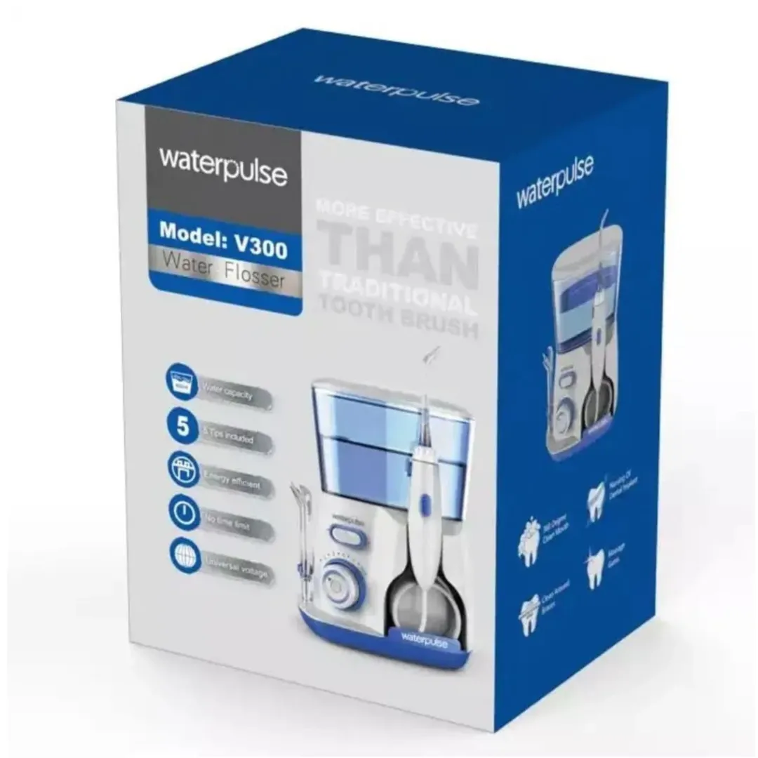 واترجت دندان V300 واتر پالس یک دستگاه کاربردی جهت پاشیدن مایعات و آب با فشار بالا بر روی دندان میباشد که میتواند به بهترین شکل ممکن اقدام به جرم گیری کرده و حتی نقاط دور از دسترس و بین دندانها را به راحتی پاکسازی نماید.