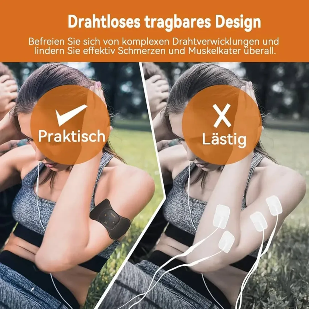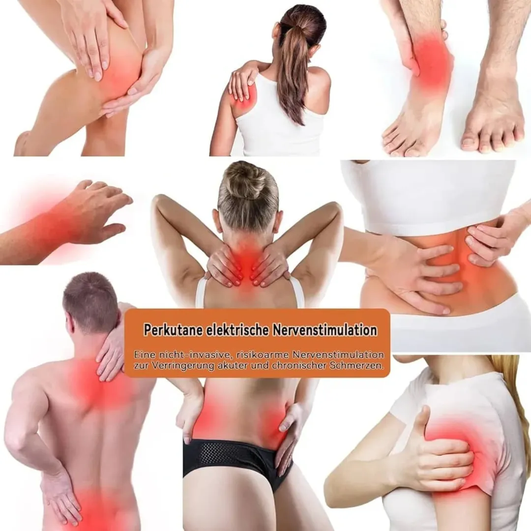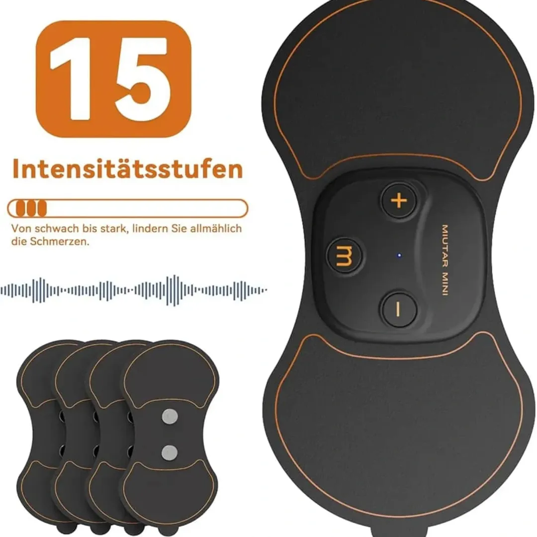 تسکین درد بدون دارو و غیر تهاجمی با فناوری TENS. طراحی شیک و بدون سیم با 15 حالت و 15 سطح شدت. باتری شارژی USB و الکترودهای ژل ضد حساسیت.