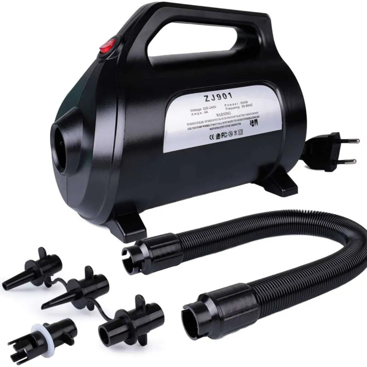 این پمپ باد الکتریکی برای باد کردن مسیرهای هوایی، تشک های ژیمناستیک، تخت های بادی و سایر وسایل بادی مناسب است. با سرعت بالا باد بزرگترین بادیها را در عرض چند دقیقه تجربه خواهید کرد. پمپ دارای ۴ اتصالات مختلف و دارای درگاه مکش برای تخلیه باد میباشد.