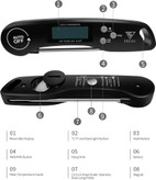 عملکردهای هوشمندتر: فقط کافی است پروب گوشت را باز کنید و شروع کنید! با عملکرد هوشمند روشن/خاموش خودکار، پروب دماسنج هنگام باز یا بسته کردن پروب، خود به خود روشن یا خاموش میشود. و دکمه نگه داشتن به شما این امکان را میدهد که دمای خوانده شده روی صفحه نمایش را "نگه دارید" تا پس از برداشتن دماسنج غذا از محل پخت، دما را بخوانید! پشت و قلاب مغناطیسی امکان نگهداری راحت را فراهم میکنند.