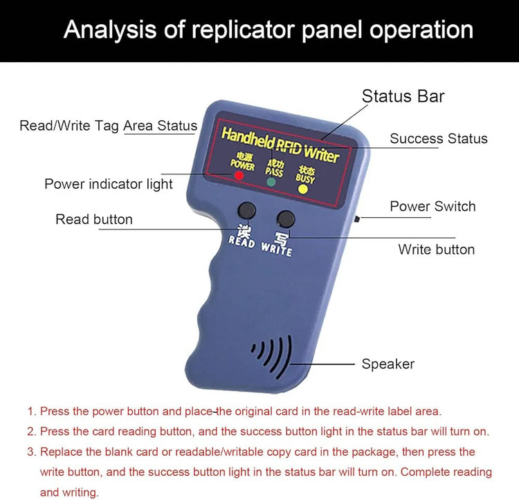سازگاری با فرکانس: دستگاه کپی کارت کنترل دسترسی ما فقط با کارتهای RFID با فرکانس ۱۲۵ کیلوهرتز سازگار است. این دستگاه نمیتواند کارتهای ۱۳.۵۶ مگاهرتز را کپی کند. لطفاً قبل از خرید، مطمئن شوید که کارتی که میخواهید کپی کنید در محدوده فرکانس پشتیبانی شده قرار دارد.
