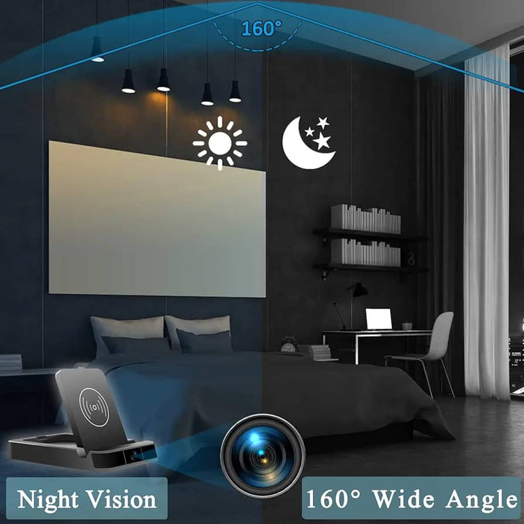 شارژر بیسیم دوربین جاسوسی Igzyz، دوربین مخفی 4K/1080P وایفای با زاویه دید 160 درجه و دید در شب، دوربین مداربسته امنیتی خانگی با قابلیت تشخیص حرکت و هشدار برای IOS