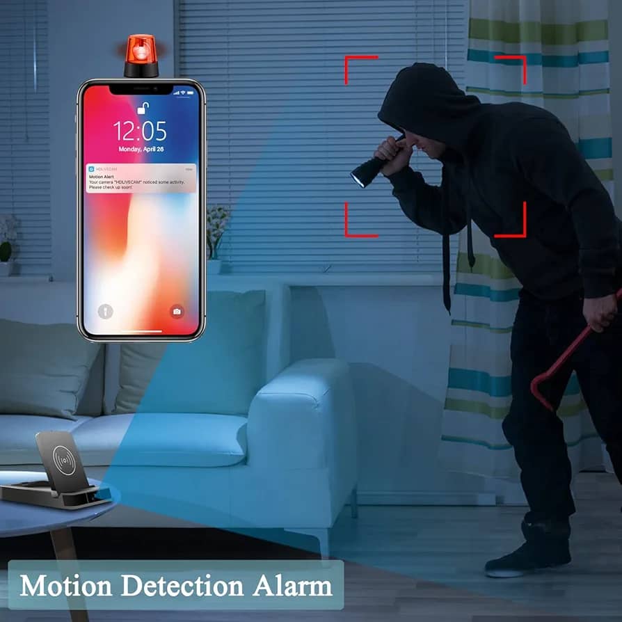 ✅ تشخیص حرکت با آلارم: به محض تشخیص حرکت، دوربین مخفی یک اعلان فوری به همراه تصاویر به گوشی شما ارسال میکند. میتوانید وارد برنامه شوید تا به صورت زنده ببینید چه اتفاقی میافتد و دیگر نگران از دست دادن چیزی مهم نباشید. توجه: اعلان پیام آلارم نیاز به فعال بودن مجوز اعلان برنامه در تنظیمات گوشی دارد.