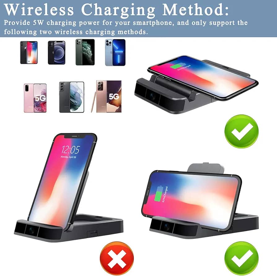 ✅ دوربین مخفی 4K/1080P: این یک دوربین وایفای با ظاهری شبیه به یک شارژر بیسیم است. به عنوان یک دوربین، امکان پخش زنده 4K و 1080P HD را برای انتخاب دارد. و میتواند گوشی هوشمند شما را با قدرت شارژ 5 وات (در صورت پشتیبانی گوشی هوشمند شما) شارژ کند. نه تنها میتوانید هنگام بازی یا مطالعه دستان خود را آزاد کنید، بلکه به عنوان یک دوربین امنیتی خانگی نیز عمل میکند و مراقب خانواده خود باشید.