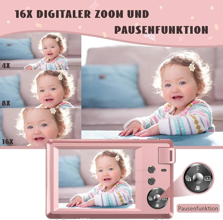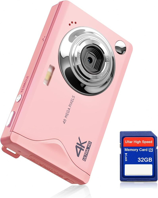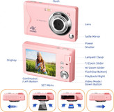 دوربین دیجیتال کامپکت با کارت 32 گیگابایتی، دوربین 48 مگاپیکسلی 1080P HD 2.4 اینچی LCD با دوربین قابل شارژ با زوم دیجیتال 16 برابر برای کودکان، نوجوانان، مبتدیان، پسران، دختران