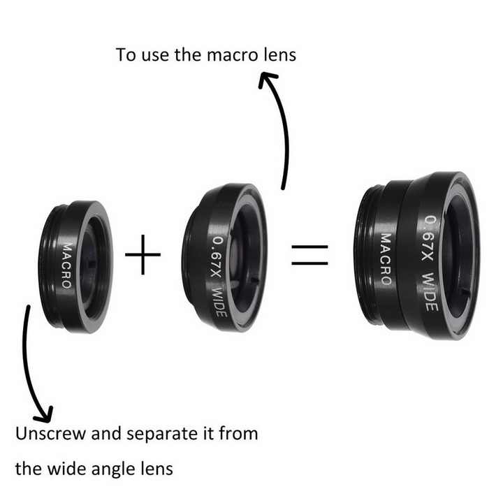 لنز جانبی گوشی موبایل گیره دار با ۳لنز فیش ای- واید- مایکرو