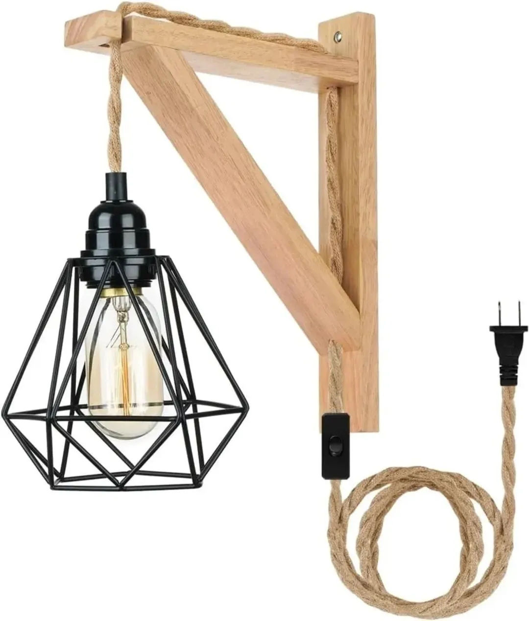 ناموجودچراغ دیواری چوبی با طناب کنفی